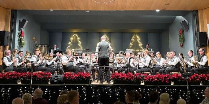Doch nicht nur der Nachwuchs lieferte ab: auch die „normale“ Kapelle spielte ein buntes Potpourri; neben einer Swing-Version des Marsches „Alte Kameraden“, durfte ein Medley der schwedischen Band „Abba“ ebenso wenig fehlen wie verschiedene Märsche. Zum Ende wurde dann die Stimmung richtig weihnachtlich, als die voll besetzte Schützenhalle zusammen mit den Musikern Weihnachtslieder anstimmte.