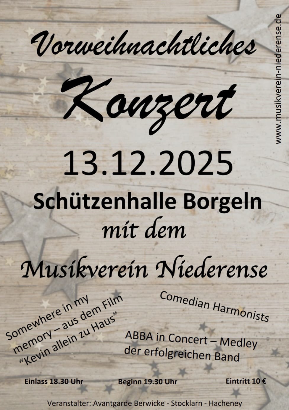Nun geht es nach Borgeln wo am Samstag, den 13.12.2025 unser Konzert ein zweites Mal aufführen werden.
